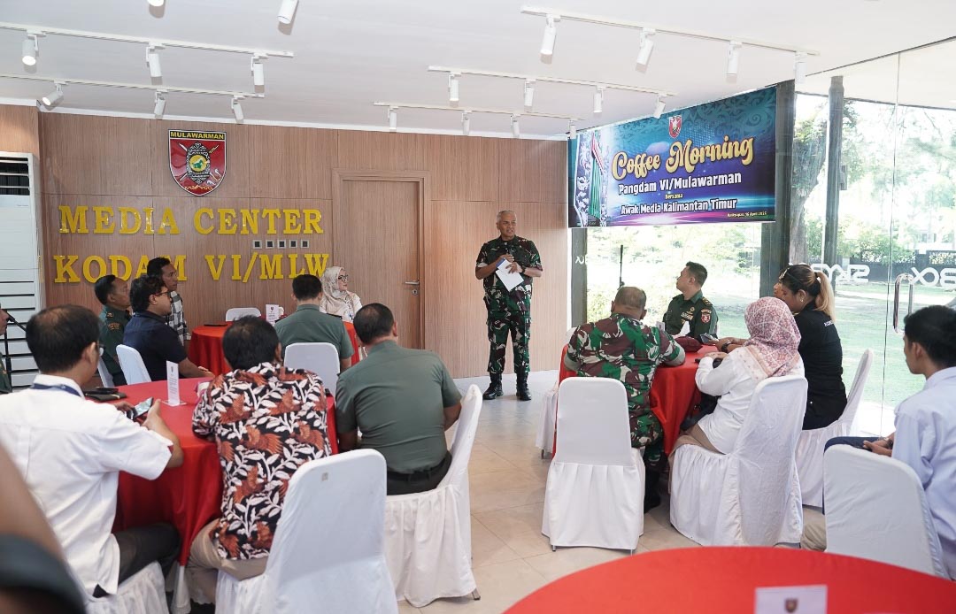 Porosnusantaranews,BALIKPAPAN – Dalam sebuah pertemuan yang berlangsung santai namun penuh makna, Pangdam VI/Mulawarman Mayjen TNI Rudy Rachmat Nugraha, S.I.P., M.Sc., menyampaikan rencana strategis yang akan mengubah wajah pertahanan dan pembangunan di Kalimantan. Bertempat di Media Center Kodam VI/Mlw, acara coffee morning yang diadakan Rabu (16/4/2025) itu menjadi momentum penting perkenalan Pangdam dengan insan pers Kaltim, sekaligus ajang berbagi arah kebijakan Kodam ke depan.