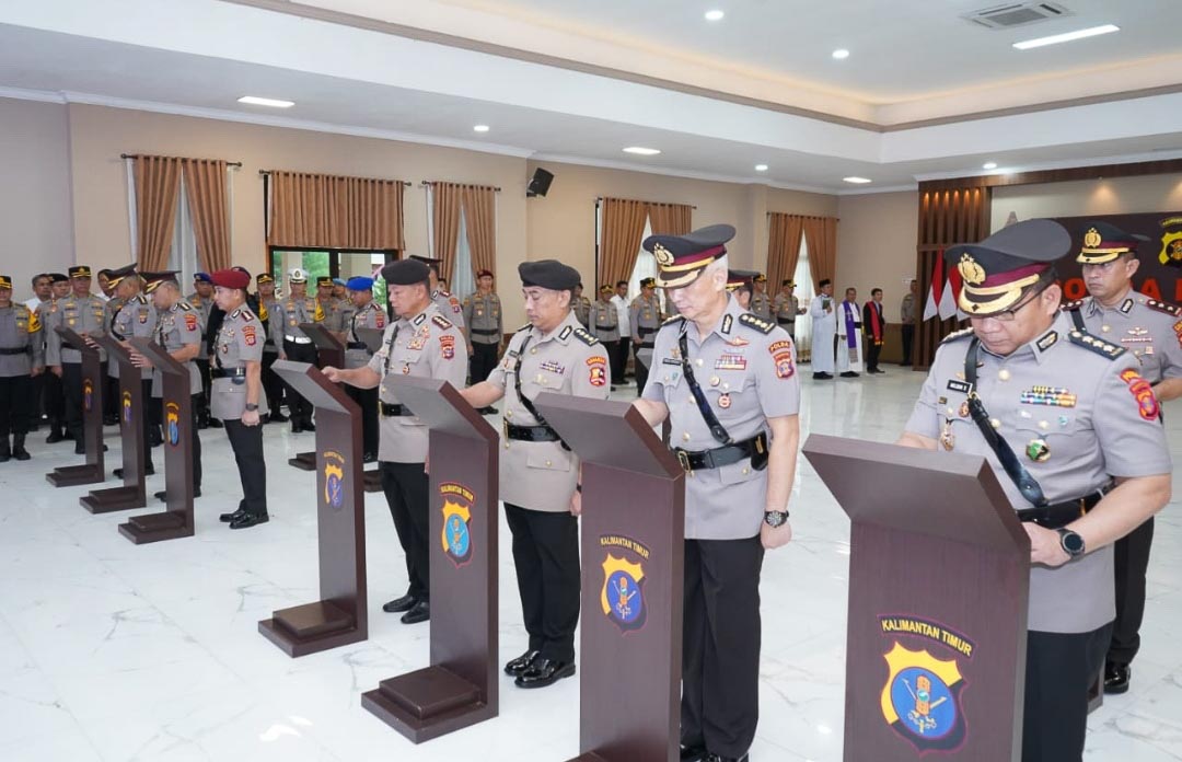 Upacara Serah Terima Jabatan (Sertijab) dipimpin langsung oleh Kapolda Kaltim, Irjen Pol Endar Priantoro, S.H., S.I.K., C.F.E., M.H., dihadiri oleh Wakapolda Kaltim Brigjen Pol Dr. H. M. Sabilul Alif, S.H., S.I.K., M.Si., serta para pejabat utama dan Kapolres Jajaran Polda Kaltim, bertempat di Gedung Mahakam, Polda Kaltim, pada Senin (7/4/2025).