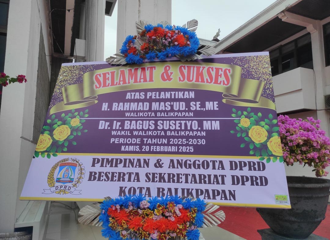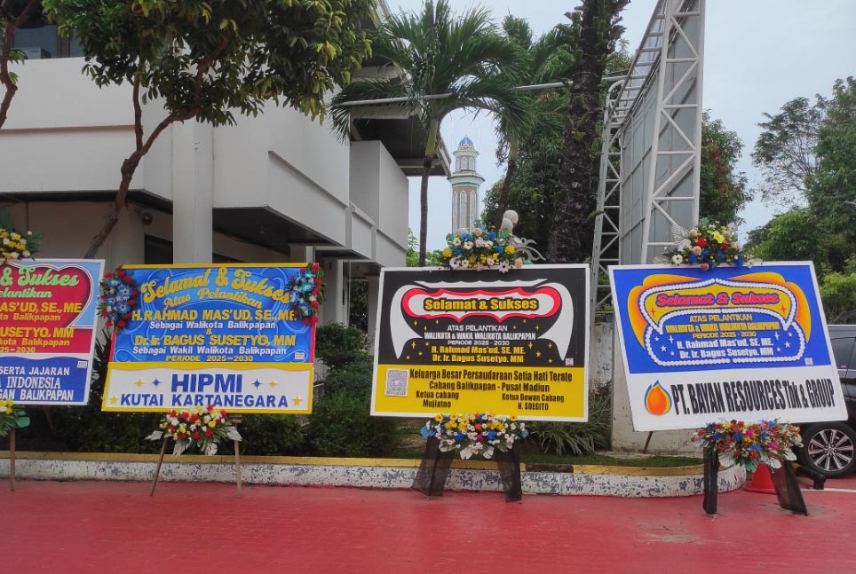 Ratusan karangan bunga yang dihantar ke halaman Kantor Wali Kota Balikpapan menggambarkan antusiasme masyarakat dan komitmen berbagai pihak untuk mendukung kepemimpinan Rahmad-Bagus.