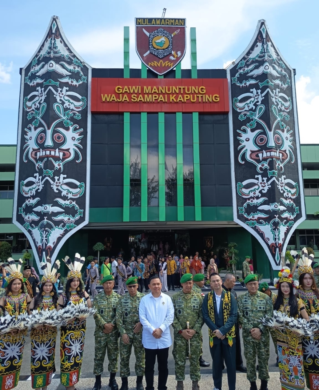 Kedatangannya disambut langsung Pangdam VI/Mulawarman Mayjen TNI Krido Pramono bersama jajaran, lengkap dengan prosesi adat khas Kalimantan Timur.